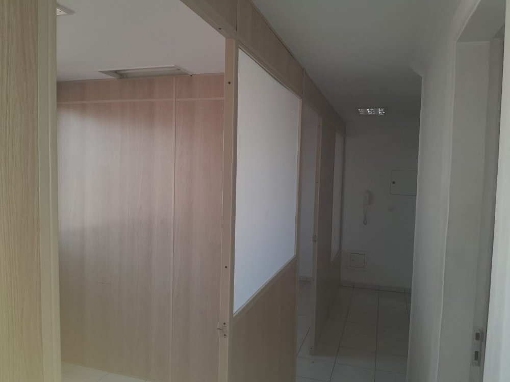 Sala no 8º andar com 34m² com divisórias, dois banheiros e copa.